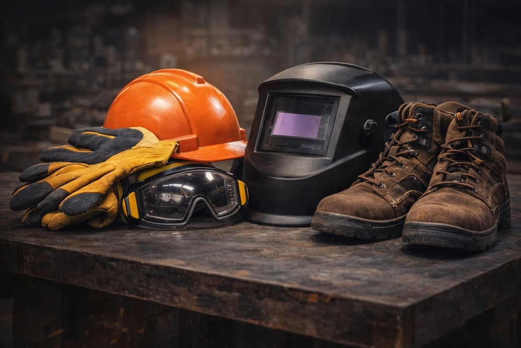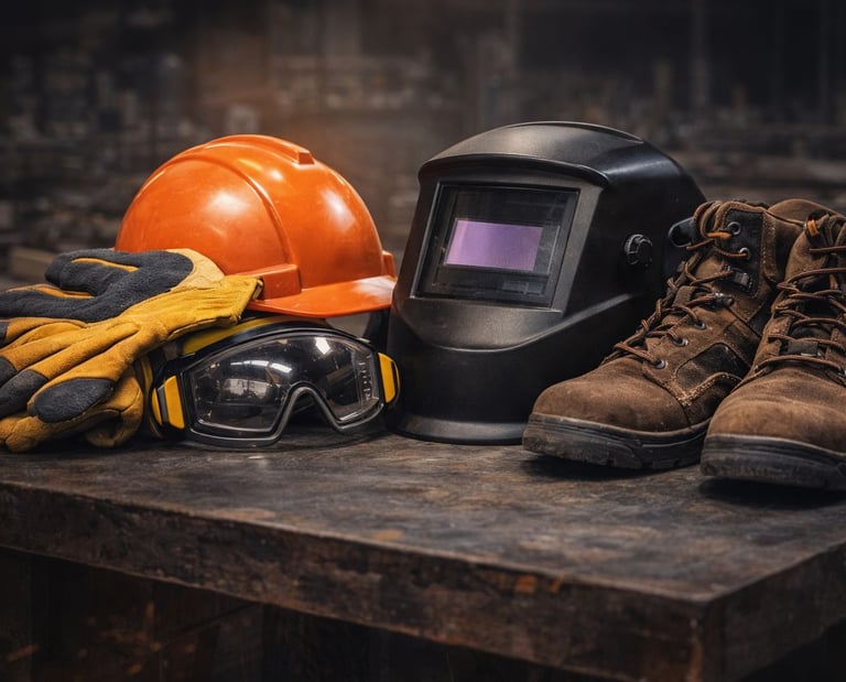 High-quality protective equipment including gloves, helmets and safety gear designed to ensure workplace safety and compliance.